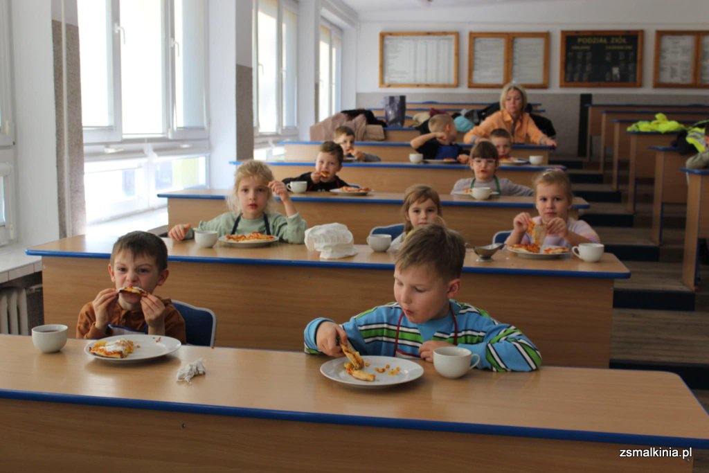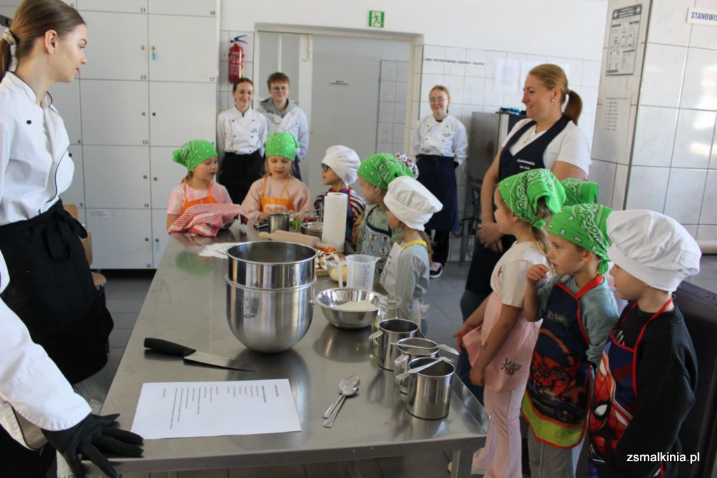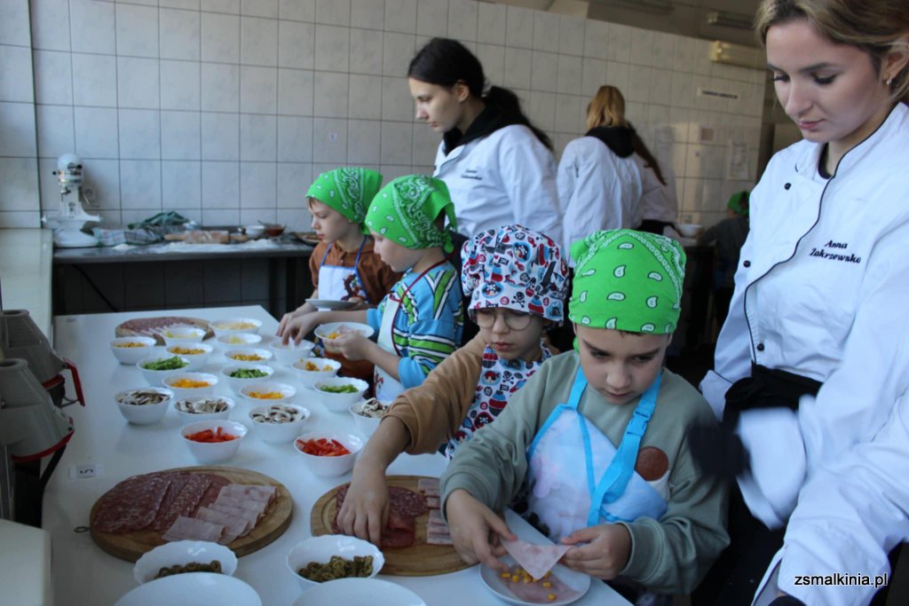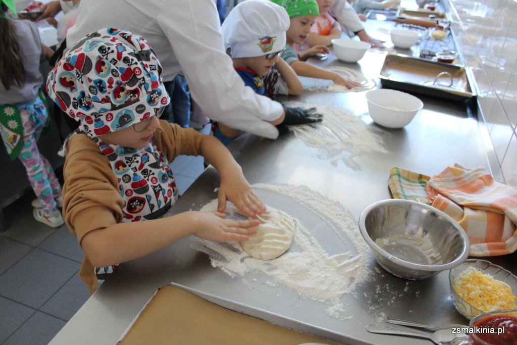 Pod okiem starszych kolegów i nauczycieli mali kucharze wyrabiali ciasto, wybierali ulubione składniki i z dumą obserwowali, jak ich własne pizze rumienią się w piecu.