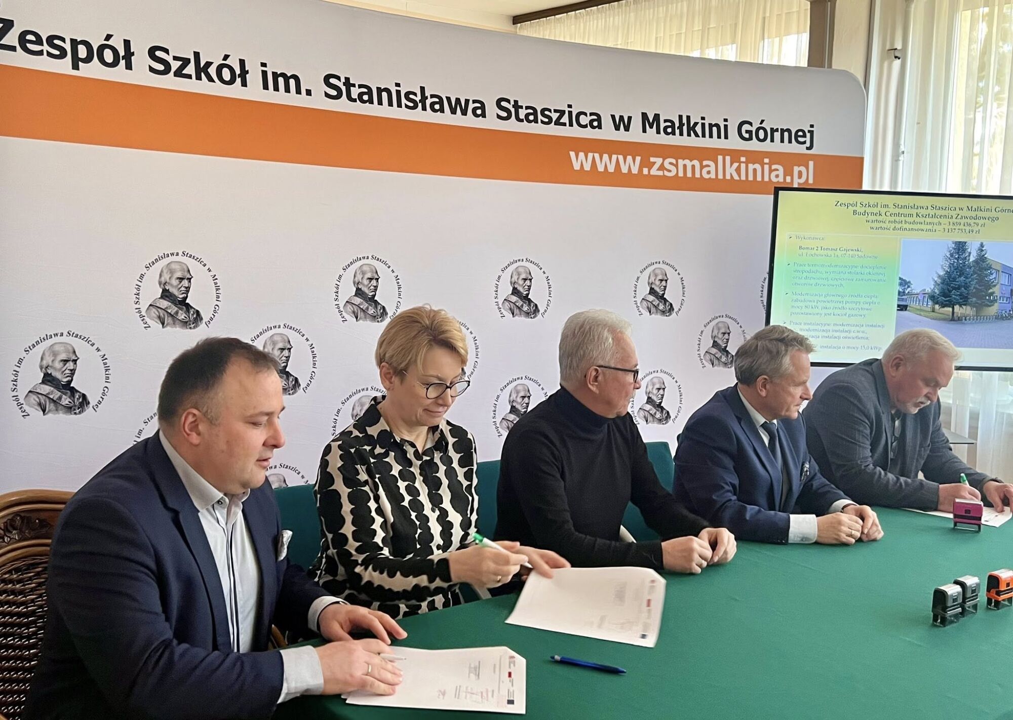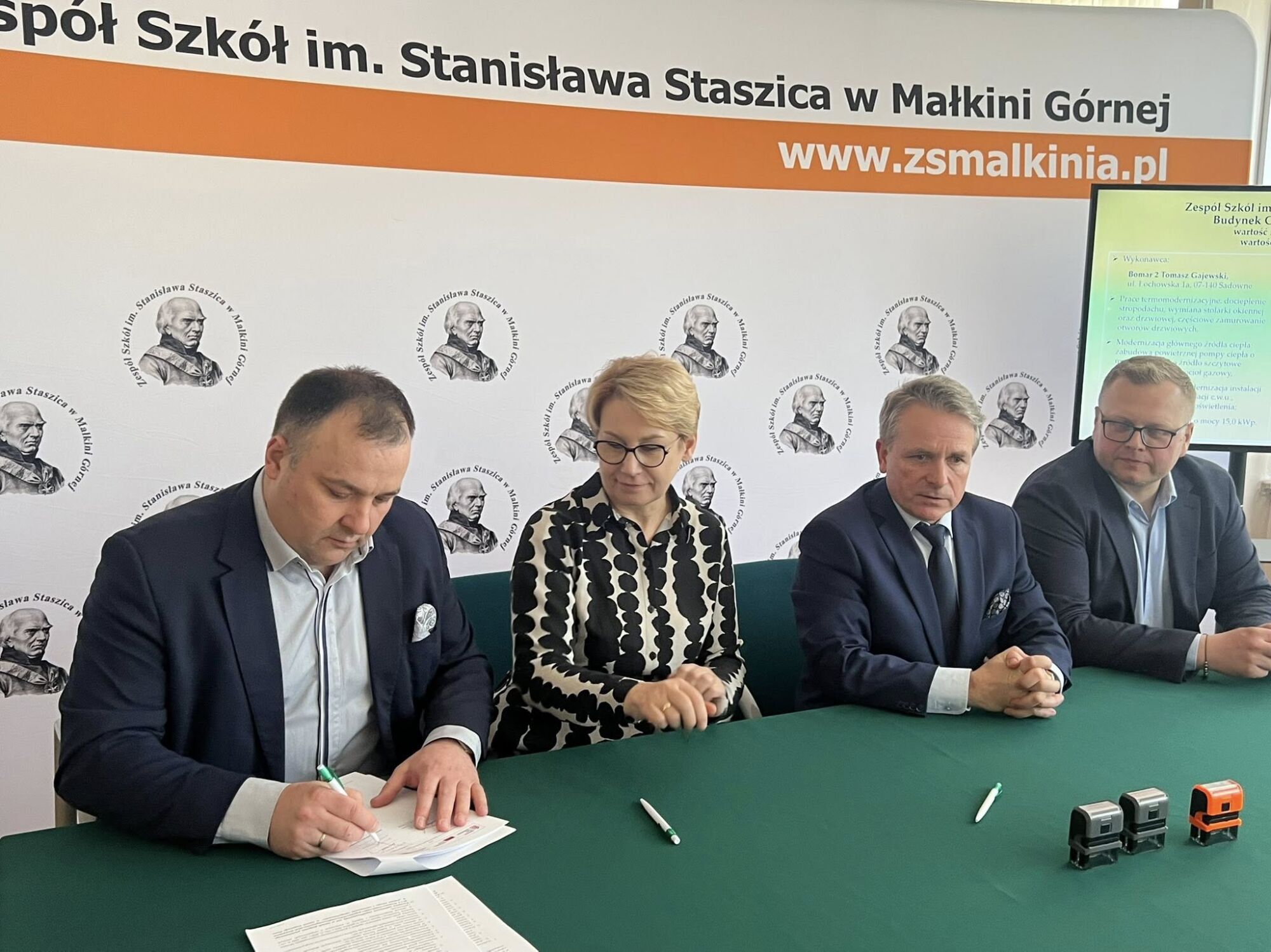 11 marca 2026 r. w budynku Zespołu Szkół im. Stanisława Staszica w Małkini Górnej została podpisana umowa na realizację termomodernizacji placówki.