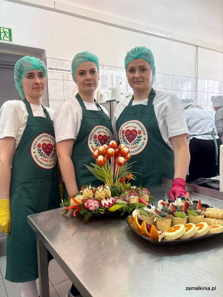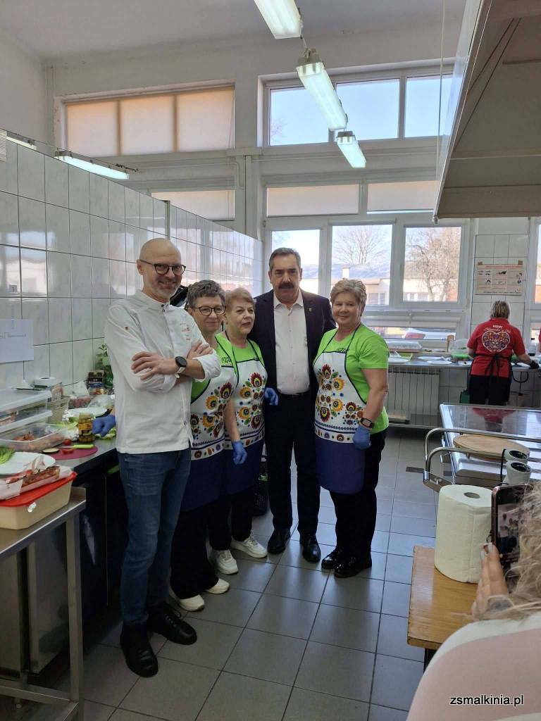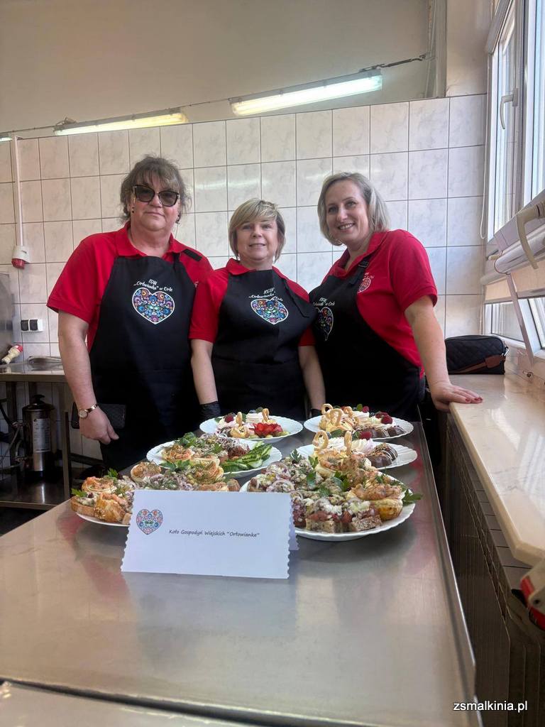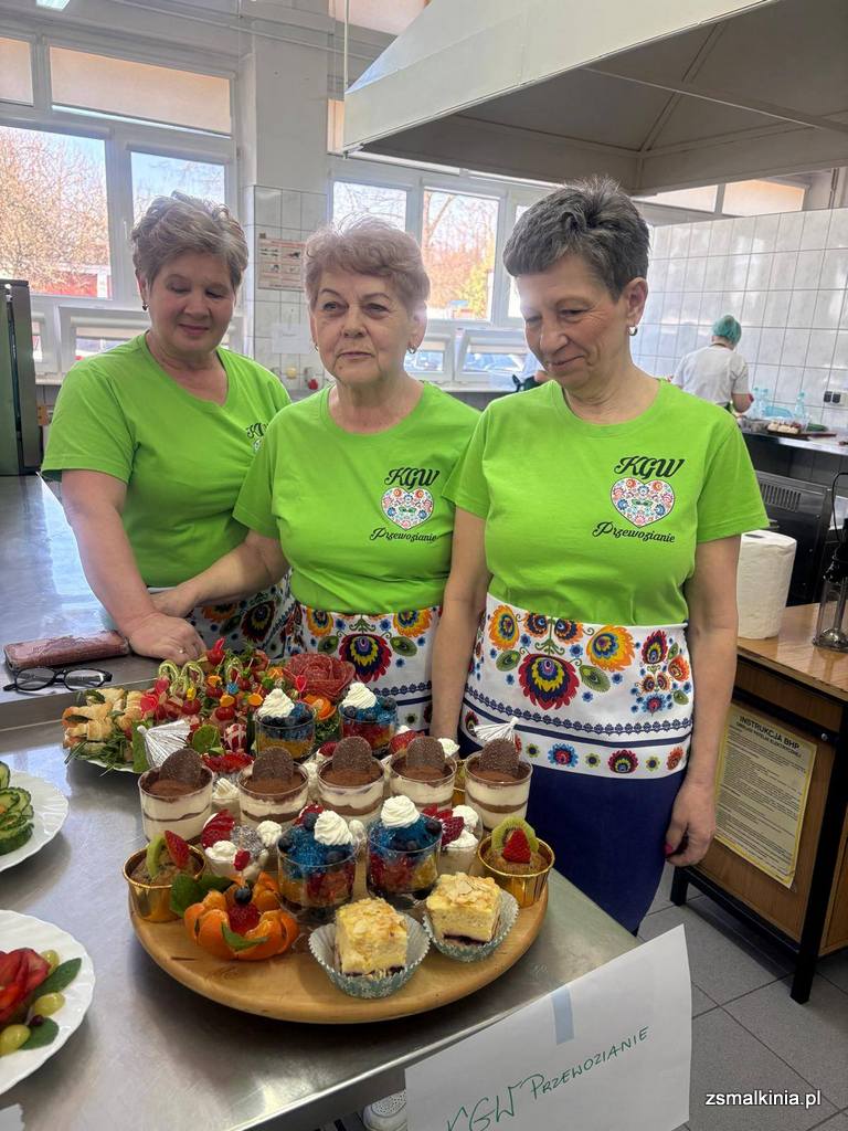 7.03.2026 r. w naszej pracowni gastronomicznej odbył się konkurs kulinarny „Bitwa Smaków” edycja Dzień Kobiet 2026. Do udziału w konkursie zgłosiło się 6 zespołów: reprezentujących Koła Gospodyń Wiejskich, sołectwa, stowarzyszenia oraz nieformalne grupy koleżeńskie. Każdy zespół miał przygotować i zaprezentować półmisek deserów oraz półmisek zimnych przystawek. Konkurs był okazją do integracji mieszkanek gminy, kultywowanie tradycji kulinarnych, wymiany doświadczeń oraz obchodów Dnia Kobiet. Potrawy za pomysłowość, oryginalność, estetykę podania, smak i walory zdrowotne oraz bezpieczeństwo pracy oceniało jury w składzie: Daniel Rostkowski – szef kuchni, właściciel restauracji Tandem, Angelika Grabowska – wybitna cukierniczka, Anna Ferenc – dietetyczka, emerytowana nauczycielka w Technikum Gastronomicznym w Staszicu Agnieszka Bojkiewicz – nasza nauczycielka przedmiotów zawodowych w Technikum Gastronomicznym W konkursie wzięły udział następujące zespoły, które wykonały: „Orłowianki” – zespół KGW przygotowały trzy rodzaje tatarów (z łososia, wołowiny i śledzi), ptysie z kremem, kruche babeczki i bezę ze śmietaną. „Dwie wsie – Jedno serce” reprezentujące Małkinię Dolną i Sumiężne przygotowały „Wiosenne Powitanie”, „Kęs Pełen Klasy”, „Bukiet Dla Niej”, „Sensację Kobiecości”, „Dotyk Wiosny” i „Manifest Piękna”. „Rostkowianki” – zespół KGW przygotowały gruszkę z serem pleśniowym w szynce parmeńskiej, dwa rodzaje koreczków, tartaletki na słono, mini kanapki, dwa rodzaje musów, rurki z kremem, tartaletki na słodko i „leśny mech”. KGW Przewozianie przygotowało rogaliki nadziewane, naleśniki, roladki w boczku, tiramisu, chia i galaretki. „Chrupiace Babki” reprezentujące Klub Senior+ przygotowały wrap z cukinii z warzywami, wytrawne kanapeczki ze smalcem z fasoli, kulki mocy i roladę z jabłkami. „Osiedlowe Małkinianki” przygotowały ostre babeczki, paluchy pizzowe, roladę ze szpinakiem i łososiem, „Babkę Wiszącą” i „Malinową Chmurkę”. Wszystkie potrawy wyglądały obłędnie i podziwom nie było końca. Wyniki konkursu ogłoszono podczas II Gminnego Dnia Kobiet. Pierwsze miejsce zajęły Chrupiące Babki, drugie – „Dwie wsie – Jedno serce”, trzecie – „Orłowianki”. Po ogłoszeniu wyników odbyła się degustacja konkursowych potraw.