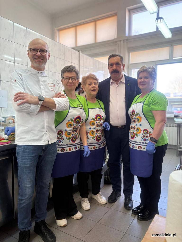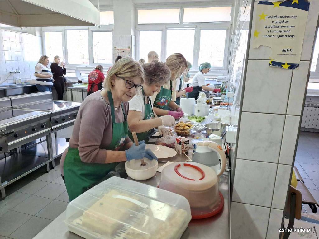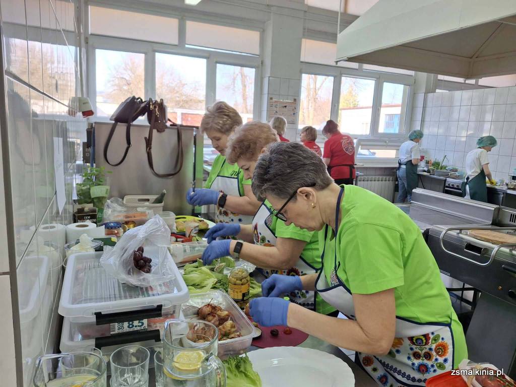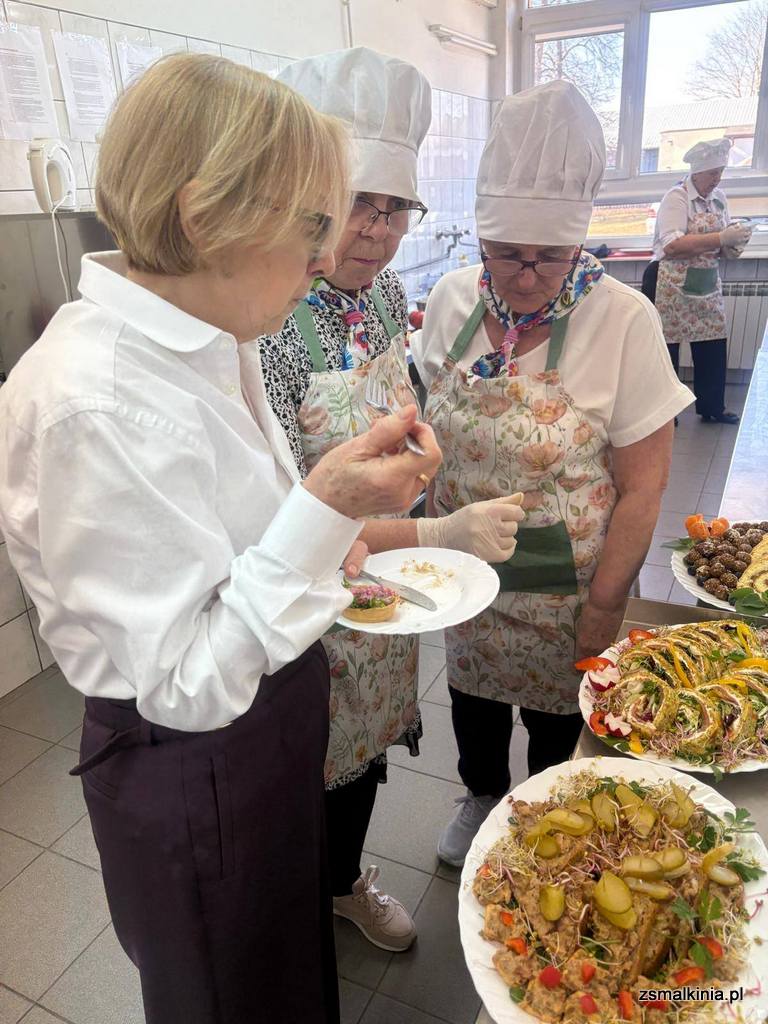 7.03.2026 r. w naszej pracowni gastronomicznej odbył się konkurs kulinarny „Bitwa Smaków” edycja Dzień Kobiet 2026. Do udziału w konkursie zgłosiło się 6 zespołów: reprezentujących Koła Gospodyń Wiejskich, sołectwa, stowarzyszenia oraz nieformalne grupy koleżeńskie. Każdy zespół miał przygotować i zaprezentować półmisek deserów oraz półmisek zimnych przystawek. Konkurs był okazją do integracji mieszkanek gminy, kultywowanie tradycji kulinarnych, wymiany doświadczeń oraz obchodów Dnia Kobiet. Potrawy za pomysłowość, oryginalność, estetykę podania, smak i walory zdrowotne oraz bezpieczeństwo pracy oceniało jury w składzie: Daniel Rostkowski – szef kuchni, właściciel restauracji Tandem, Angelika Grabowska – wybitna cukierniczka, Anna Ferenc – dietetyczka, emerytowana nauczycielka w Technikum Gastronomicznym w Staszicu Agnieszka Bojkiewicz – nasza nauczycielka przedmiotów zawodowych w Technikum Gastronomicznym W konkursie wzięły udział następujące zespoły, które wykonały: „Orłowianki” – zespół KGW przygotowały trzy rodzaje tatarów (z łososia, wołowiny i śledzi), ptysie z kremem, kruche babeczki i bezę ze śmietaną. „Dwie wsie – Jedno serce” reprezentujące Małkinię Dolną i Sumiężne przygotowały „Wiosenne Powitanie”, „Kęs Pełen Klasy”, „Bukiet Dla Niej”, „Sensację Kobiecości”, „Dotyk Wiosny” i „Manifest Piękna”. „Rostkowianki” – zespół KGW przygotowały gruszkę z serem pleśniowym w szynce parmeńskiej, dwa rodzaje koreczków, tartaletki na słono, mini kanapki, dwa rodzaje musów, rurki z kremem, tartaletki na słodko i „leśny mech”. KGW Przewozianie przygotowało rogaliki nadziewane, naleśniki, roladki w boczku, tiramisu, chia i galaretki. „Chrupiace Babki” reprezentujące Klub Senior+ przygotowały wrap z cukinii z warzywami, wytrawne kanapeczki ze smalcem z fasoli, kulki mocy i roladę z jabłkami. „Osiedlowe Małkinianki” przygotowały ostre babeczki, paluchy pizzowe, roladę ze szpinakiem i łososiem, „Babkę Wiszącą” i „Malinową Chmurkę”. Wszystkie potrawy wyglądały obłędnie i podziwom nie było końca. Wyniki konkursu ogłoszono podczas II Gminnego Dnia Kobiet. Pierwsze miejsce zajęły Chrupiące Babki, drugie – „Dwie wsie – Jedno serce”, trzecie – „Orłowianki”. Po ogłoszeniu wyników odbyła się degustacja konkursowych potraw.